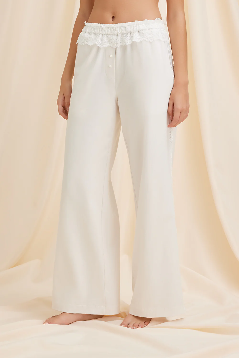 Made for downtime dressing, the 'Daydream Trousers' are cut for a wide-leg profile from soft OEKO-TEX® certified cotton-jersey. They’re finished with vintage-inspired lace along the elasticated waistband, fitted with discreet slash pockets and fasten with a duo of pearl buttons.